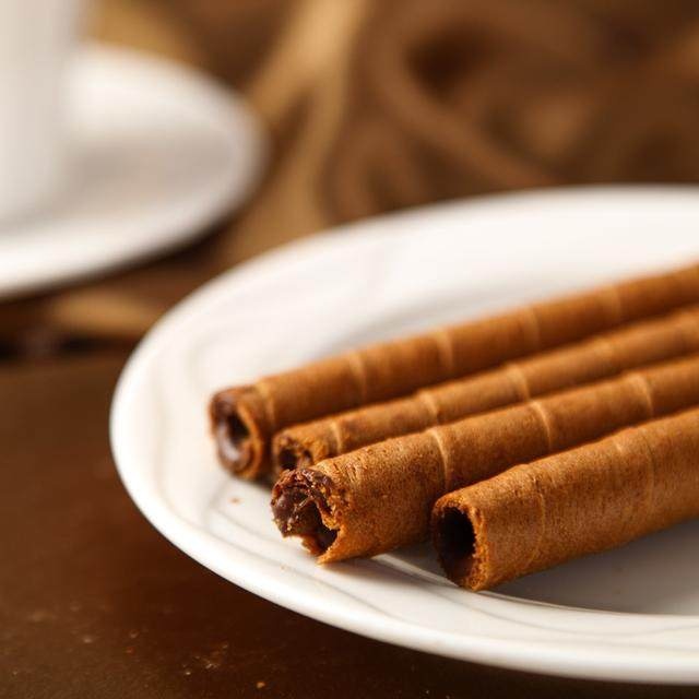 巧克力味爆浆威化卷:比手长比手指粗的巧克力味蛋卷,喜爱巧克力的童鞋不要错过哦! 酥脆的外皮加上浓郁的巧克力夹心,巧克力酱很多,也不是很甜,吃一根还想吃第二根~